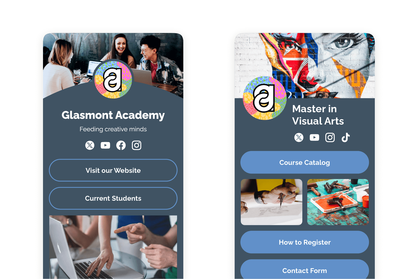 - Informiere Studierende mit einer Link-in-Bio-Seite in deinen sozialen Profilen über bevorstehende Campus-Events.
